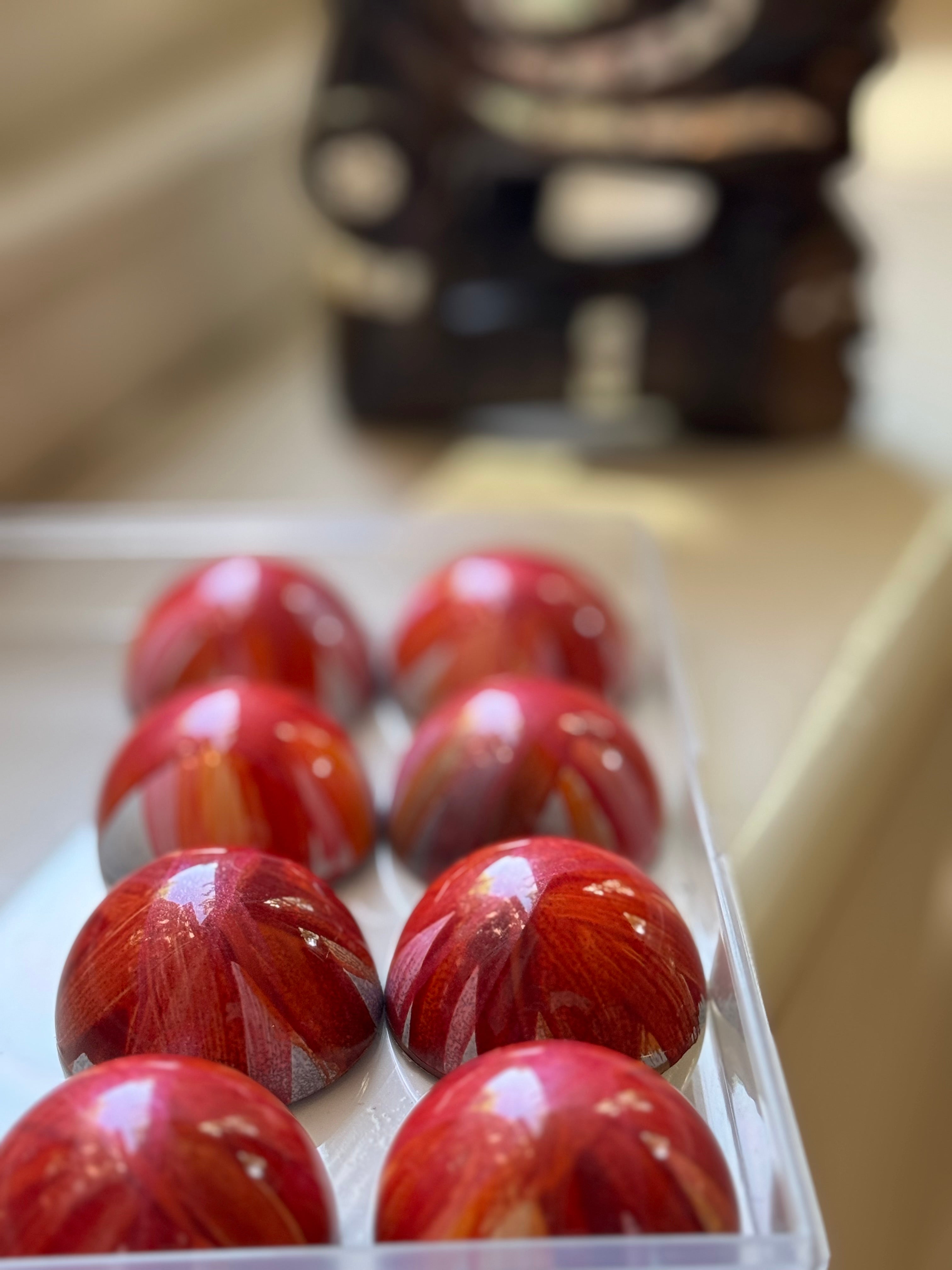 Our smaller bonbons might occasionally make an appearance alongside your box, but for now, they’re our little surprise treats—something special we like to include from time to time.